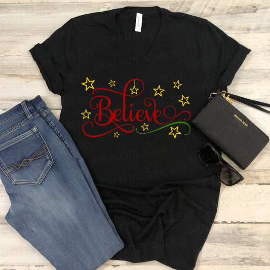 SVG Believe | Christmas Cutting File | Stars | Layered Vinyl Stencil HTV | DXF png eps jpg | Jesus | Instant Download | Ornate Script Fancy