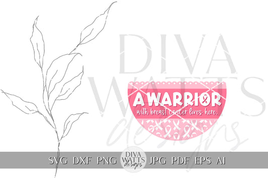 A Warrior With Breast Cancer Lives Here SVG Warrior SVG Awareness Ribbon svg Breast Cancer Door Hanger svg Cancer Awareness svg Cricut svg
