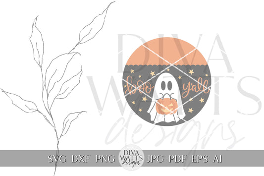 Boo Y'all Ghost with Pumpkin Door Hanger SVG | Halloween Door Decor | Laser Cut File