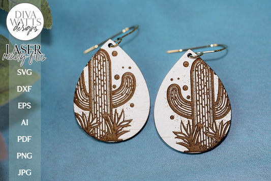 Cactus Earrings SVG | Tear Drop Laser Earrings | Southwestern Dangle Earrings