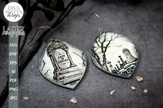 Cemetery Earrings SVG For Laser Earrings With Tombstone for Halloween Earrings For Glowforge Headstone Earrings SVG Halloween Earrings Grave