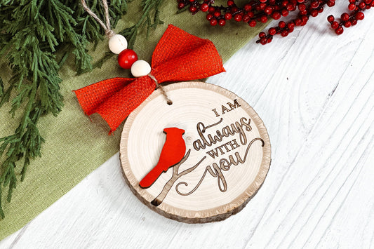 Cardinal Memorial Ornament SVG - "I Am Always With You" Laser Cut File, Tree Scene Sympathy Keepsake for Laser Engraving and Laser Cutting
