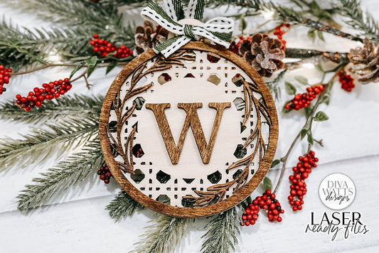 Christmas Boho Rattan Monogram Ornament Glowforge SVG | Laser File