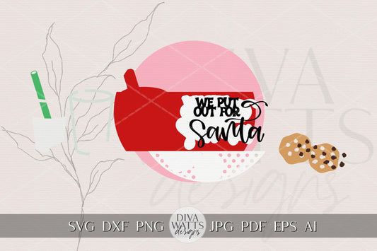Christmas Santa Cookies Milk Round Door Hanger SVG | We Put Out for Santa Sign | Laser Cut Digital File for Glowforge xTool