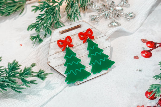 Christmas Tree Earrings SVG Glowforge File | Layered Holiday Bow Earring Template | Festive Laser Cut Acrylic Wood Jewelry SVG for xTool