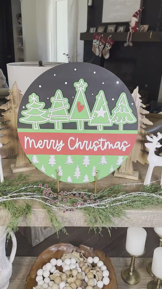 Christmas Tree Laser Cut File | "Merry Christmas" SVG Round Door Hanger | Festive Holiday Laser Cut Christmas Decor