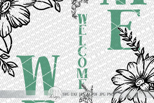 Welcome Vertical Porch SVG | Floral Sign | DXF and more!