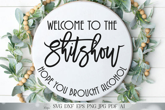 Welcome To The ShitShow | Hope You Brought Alcohol | 2 Versions Included | Round Sign | Humor Sign | Funny Sign | SVG DXF and More! | Mature