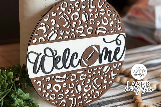 Welcome with Football Leopard Print Glowforge SVG | Laser Cut File