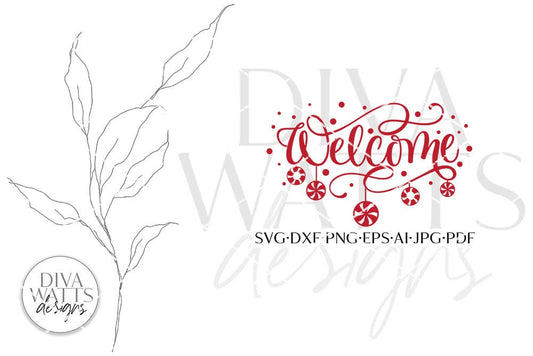 Welcome With Dangling Peppermints SVG | Christmas / Winter Design