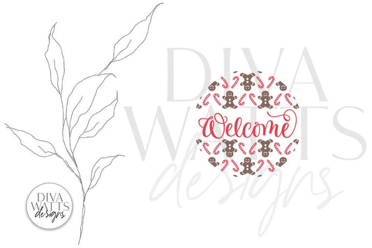 Welcome with Gingerbread and Candy Canes SVG | Christmas Round Sign Design