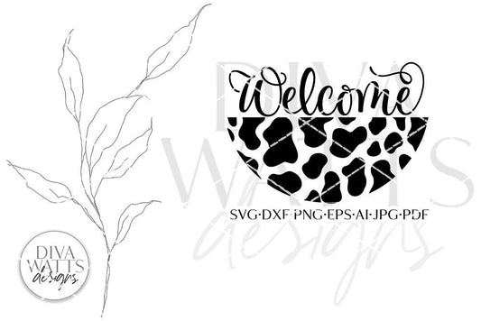 Welcome With Cow Print Half Round | Round Sign SVG