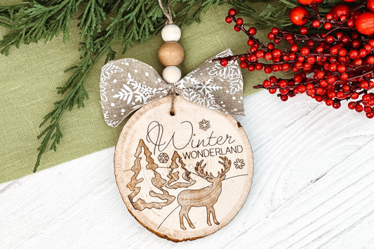 Winter Wonderland Ornament SVG - Deer and Tree Laser Cut Christmas Ornament, Rustic Holiday Decor for Laser Engraving