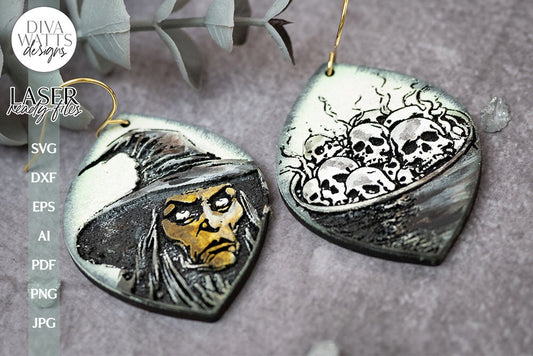 Witch's Brew Earrings SVG For Laser Earrings With Witch for Halloween Earrings For Glowforge Cauldron Earrings SVG Halloween Witch Earrings
