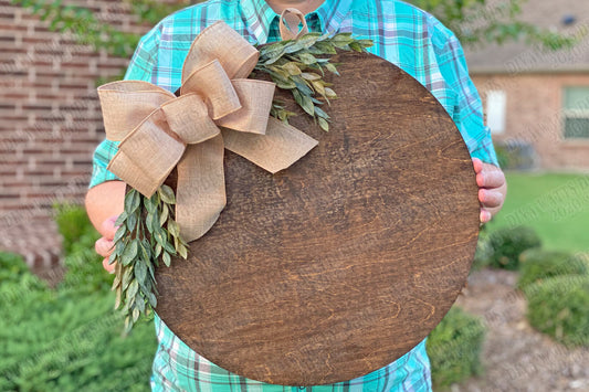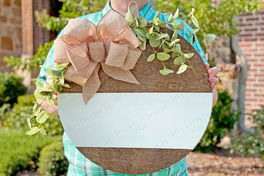 Wood Wreath Mockup | Digital Design Display | Instant Download | Wooden Wreath With Greenery and Bow Mock-up