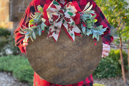 Wood Christmas Wreath Mockup | Digital Design Display | Instant Download | Wooden Stained Wreath With Greenery and Bow Mock-up