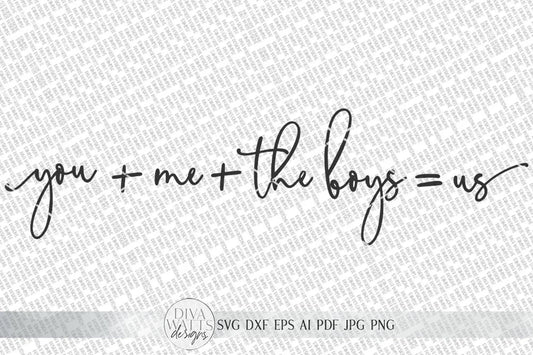 You Plus Me Plus The Boys Equals Us SVG | Farmhouse Sign SVG | dxf and more