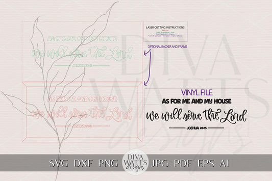 As For Me and My House SVG | Bible Verse Laser Cut File Joshua 24:15 | Farmhouse Christian Wall Sign for Glowforge xTool OMTech