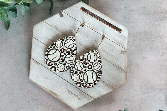 Baseball Leopard Print Drop Earrings Glowforge SVG | Sports Earring Design