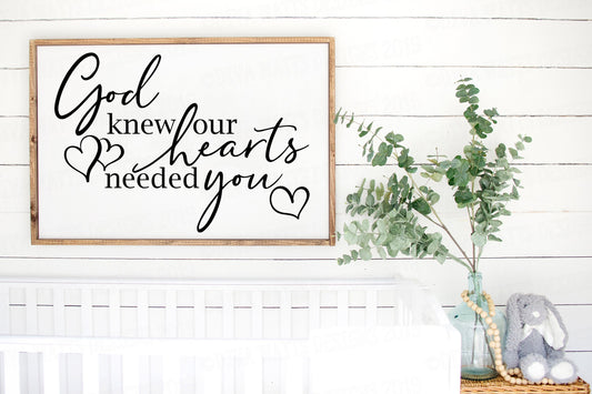 SVG God Knew Our Hearts Needed You | Cutting File | Nursery | Baby | Farmhouse | Sign | Vinyl Stencil HTV | DXF png eps