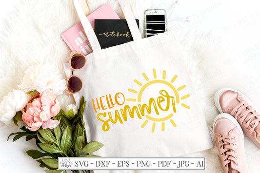 SVG | Hello Summer | Cutting File | Sun Sunshine | Vacation | Beach | Cricut Silhouette | Sign Shirt Tote | Vinyl Stencil HTV | dxf eps png