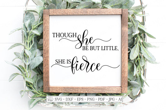 SVG | Though She Be But Little She Is Fierce | Cutting File | Girl Girl's Bedroom Farmhouse Sign | Motivational Inspirational | dxf ai | htv
