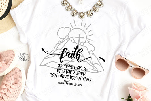 SVG | Faith As Small As A Mustard See Can Move Mountains | Cutting File | Matthew | Christian Scripture Verse | Vinyl Stencil HTV | Sign
