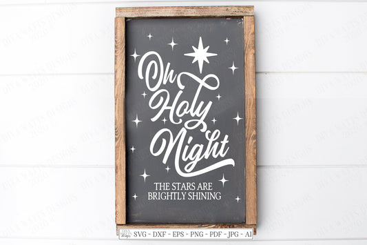 SVG Oh Holy Night | Cutting File | The Stars Are Brightly Shining | Jesus Birth Christmas Hymn Song Carol | Vinyl Stencil HTV | DXF | Sign