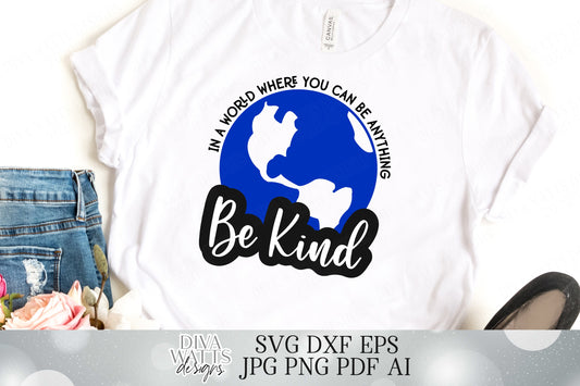 In A World Where You Can Be Anything Be Kind | Cutting File | T Shirt Sign Tote Cut Files | SVG DXF eps | Cricut | Silhouette | Vinyl htv