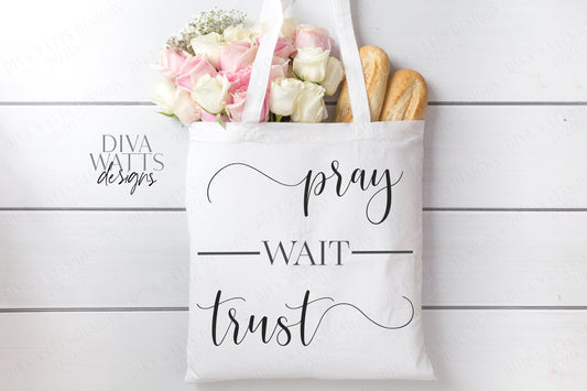 SVG | Pray Wait Trust | Cutting File | Christian Inspirational Faith Farmhouse Sign | Vinyl Stencil HTV | Shirt Tote | png eps jpg pdf ai
