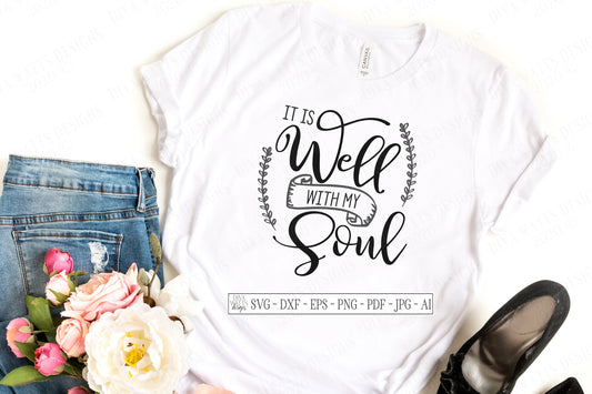 SVG | It Is Well With My Soul | Cutting File | Farmhouse Wreath Banner | Shirt Sign | Vinyl Stencil HTV | DXF eps | Christian Hymn Song