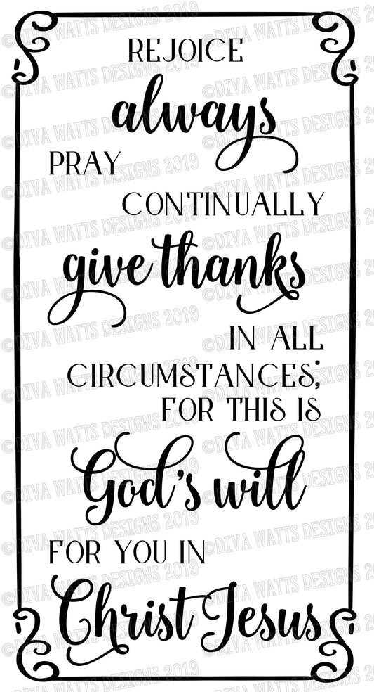 SVG Rejoice Always Pray Continually Give Thanks In All Circumstances for this is God's Will for you in Christ Jesus | Cutting File DXF PNG