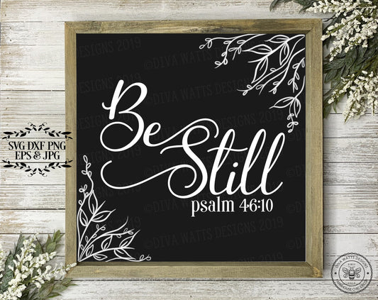 SVG Be Still Psalm 46:10 | Cutting File | Christian Bible Verse Quote | DXF PNG eps jpg | Vinyl Stencil htv | Floral Farmhouse Rustic