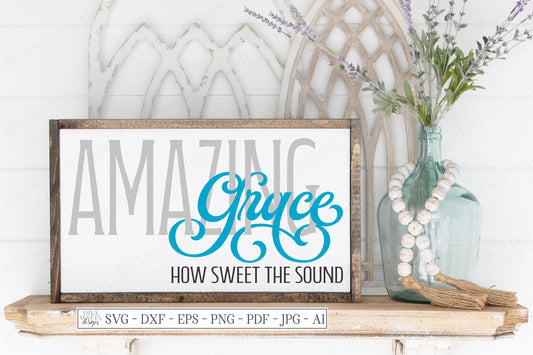 SVG | Amazing Grace How Sweet The Sound | Cutting File | Christian Song Hymn | Vinyl Stencil HTV | Farmhouse Sign | Music Art | Script | DXF