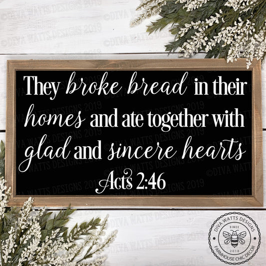 SVG They Broke Bread In Their Homes and Ate Together With Glad And Sincere Hearts Acts 2:46 | Cutting File DXF PNG | Vinyl Stencil Christian