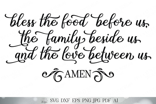 SVG Bless The Food Before Us, The Family Beside Us and The Love Between Use Amen | Christian Prayer | Farmhouse Kitchen Sign | DXF and more