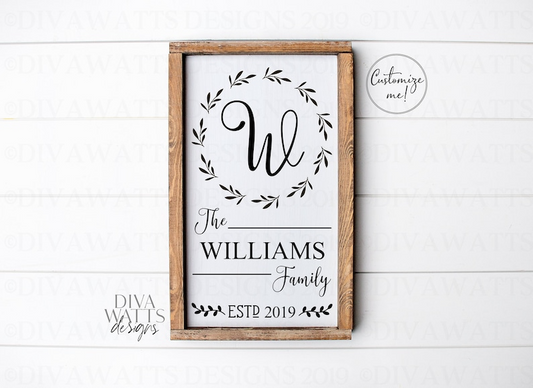 SVG Family Monogram Sign | Cutting File | Last Name | Add Your Text & Font | Customize Personalize | Vinyl Stencil HTV Instant Download PNG