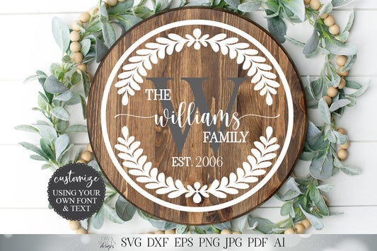 Last Name Family Sign | Farmhouse Rustic Design | Add Your Name with Your Own Font | Round Wreath | Cutting File SVG DXF and More!