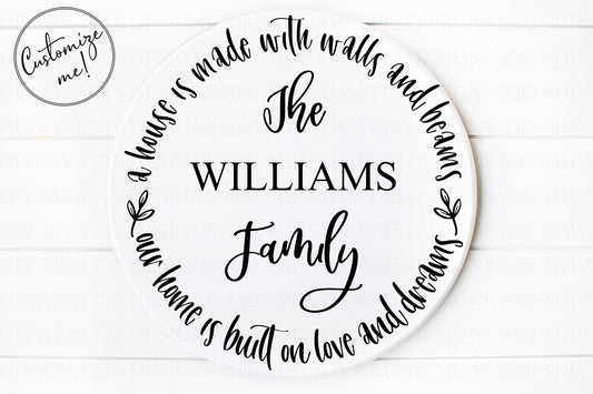 SVG A House Is Made With Walls and Beams | Cutting File | Our Home Is Built On Love and Dreams | Round Circle Farmhouse Sign | Vinyl Stencil