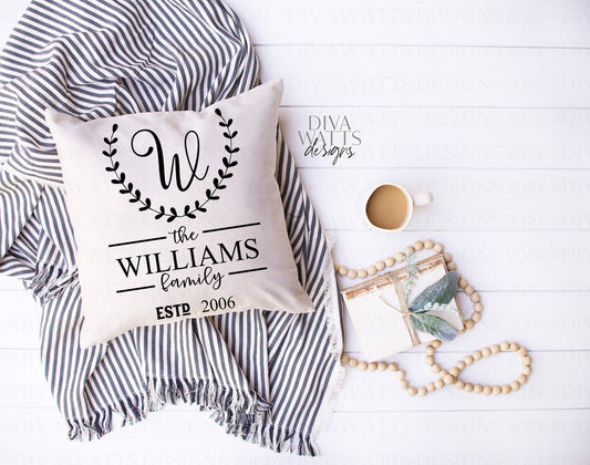 SVG Monogram | Cutting File | Farmhouse Laurel | Last Name | Customize Personalize | Vinyl Stencil HTV | PNG | Family Sign