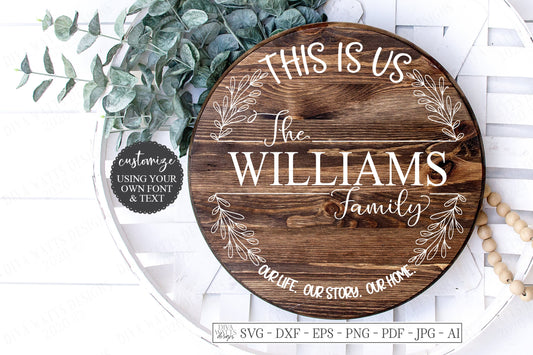 SVG | This Is Us Our Life. Our Story. Our Home. | Cutting File | Customize Family Last Name Round Farmhouse Sign | Vinyl Stencil | DXF EPS
