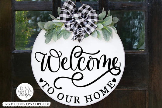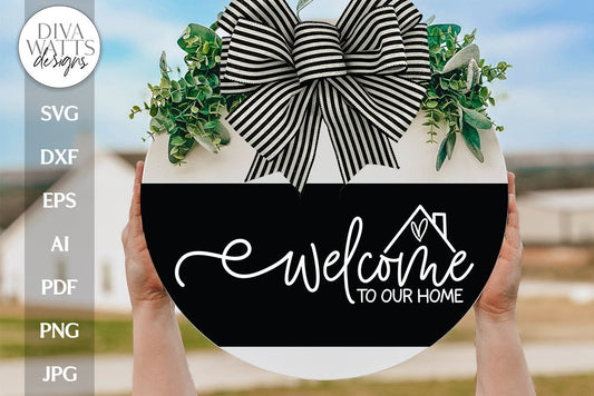 Welcome To Our Home SVG | Farmhouse Door Hanger Design