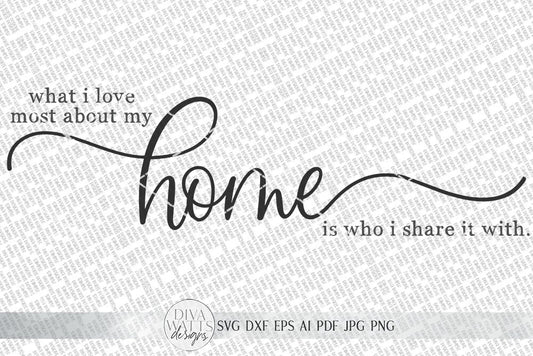 What I Love Most About My Home Is Who I Share It With SVG | Farmhouse Sign SVG | dxf and more