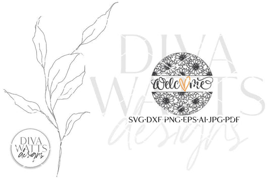 Welcome With Sunflowers & Heart SVG | Round Sign Design