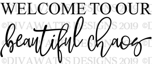 SVG Welcome To Our Beautiful Chaos | Cutting File | Farmhouse Bouncy Script | Family Sign | Vinyl Stencil HTV | dxf png eps jpg ai pdf