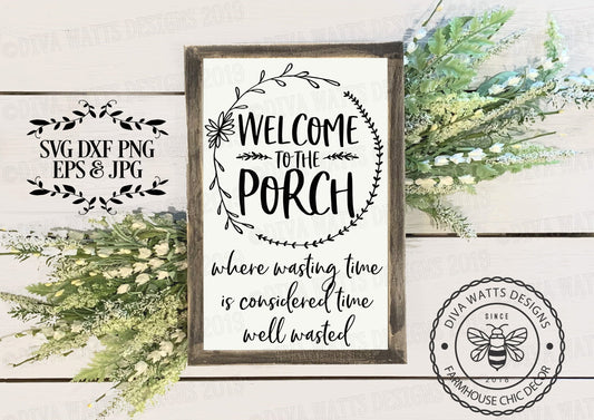SVG Welcome to the Porch | Cutting File | Where wasting time is considered time well wasted | DXF PNG eps jpg | Instant Download | Cricut