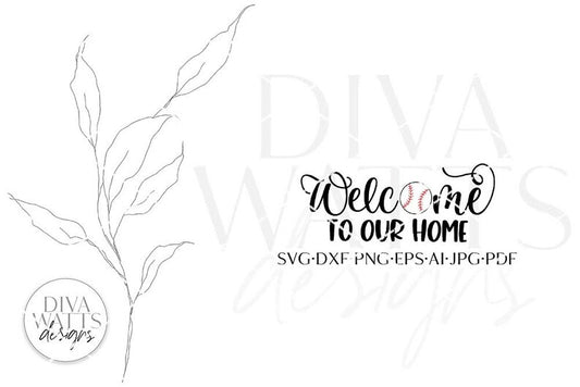 Welcome To Our Home With Baseball SVG | Farmhouse Round Front Door Sign Design