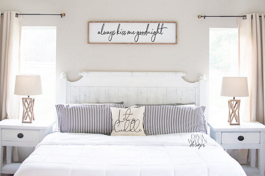 SVG Always Kiss Me Goodnight | Cutting File | Bedroom Sign | DXF PNG eps jpg | Instant Download | Script Handwriting | Vinyl Stencil htv