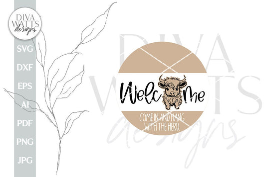 Welcome SVG Door Hanger Highland Cow SVG Farmhouse Front Door Sign SVG With Highland Cow Welcome Door Hanger svg Farmhouse Porch Decor svg