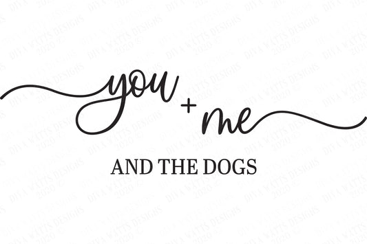 SVG | You + Me And The Dogs | Cutting File | Farmhouse Rustic Sign | Vinyl Stencil HTV | Dog | dxf eps png jpg | Script With Tails | Cricut
